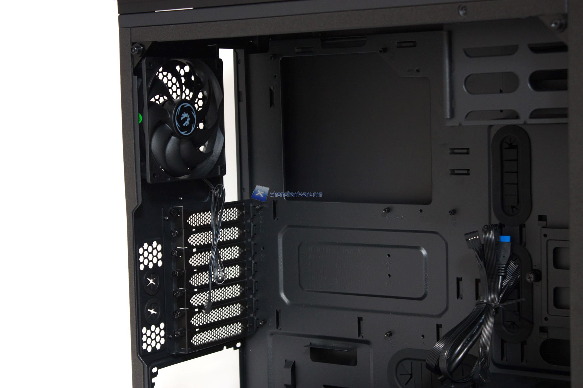 Poco più su gli slot PCI-E forati e una classica ventola da 120 mm.