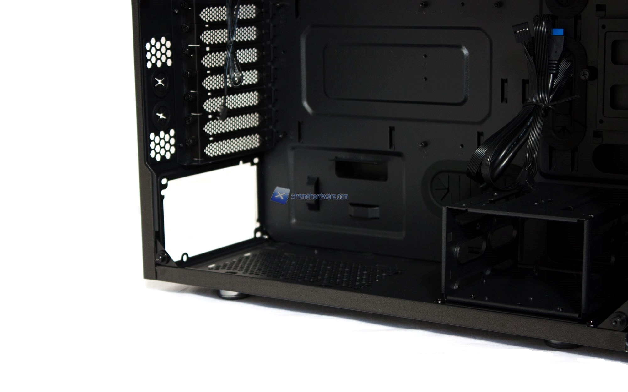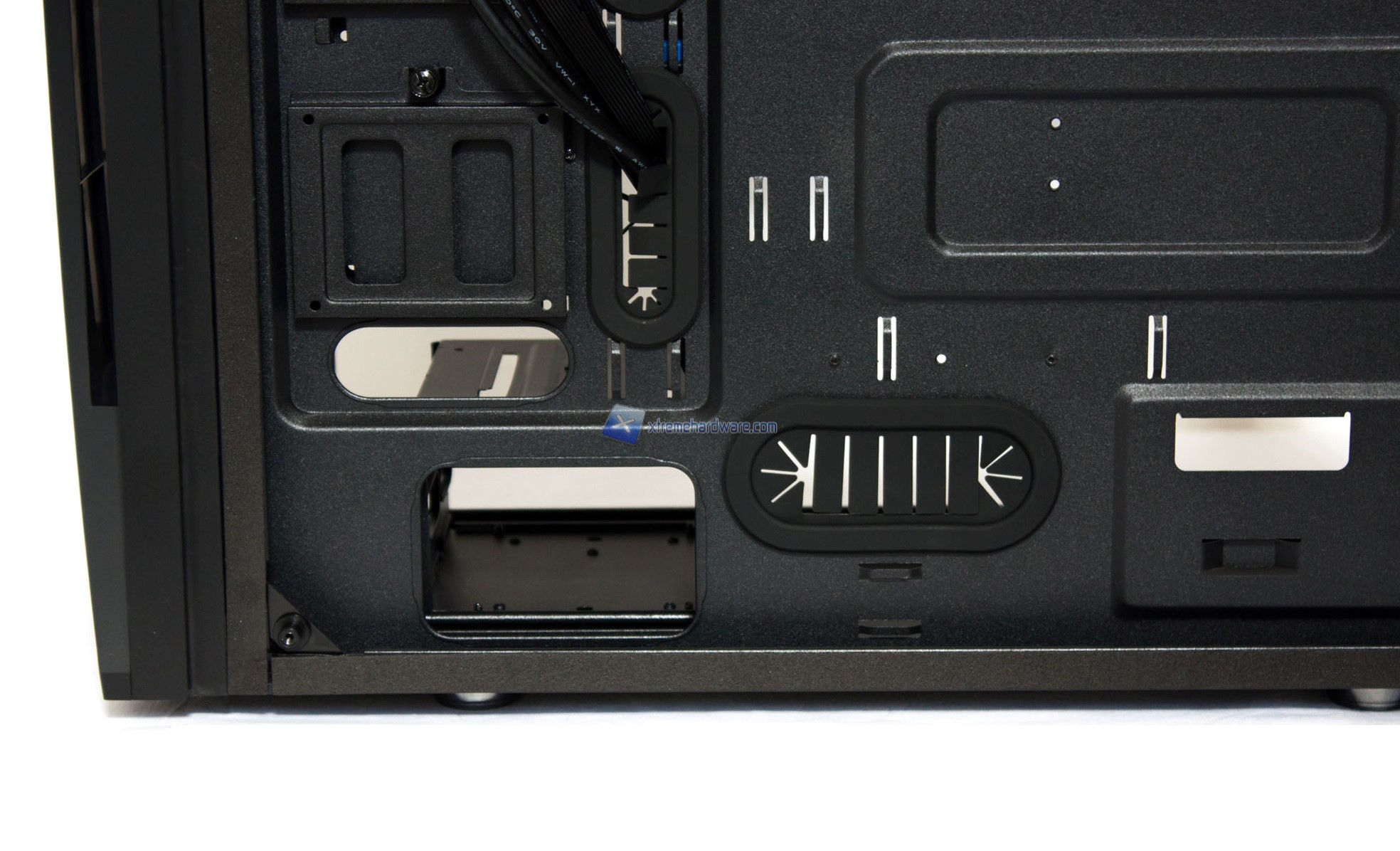 Ancora più sotto alcuni fori per il passaggio dei cavi relativi al supporto per SSD principale.