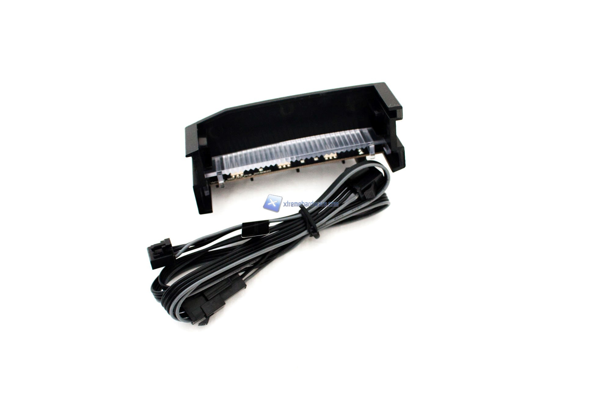 Passiamo ora a dare uno sguardo al bracket in plastica incluso nel bundle del BitFenix Aurora. Bracket in plastica che andrà fissato ai lati inferiori del vostro SSD e tramite dei LED e un inserto in plastica trasparente irradierà quel giusto il vostro SSD del colore che sceglierete.