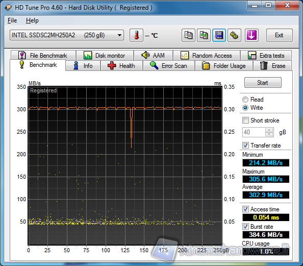 Come possiamo osservare nei grafici sottostanti relativi al Burst Rate (velocità massima relativa al trasferimento dati dall’interfaccia SATA al Sistema Operativo) che inseriamo a titolo indicativo, e al Transfer Rate Average (velocità media di trasferimento dati) in questo caso possiamo notare immediatamente una forte discrepanza tra quanto dichiarato dalla casa produttrice rispetto i risultati ottenuti in fase di test.