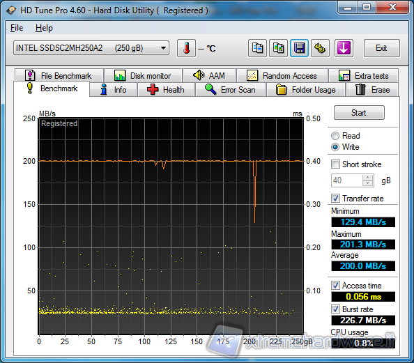 Test effettuati con Drive vuoto appena connesso all’interfacce Serial ATA 3Gb/s e 6Gb/s, senza aver effettuato alcuna partizione specifica al Disco di test, i test sono effettuati in modalità RANDOM (casuale).